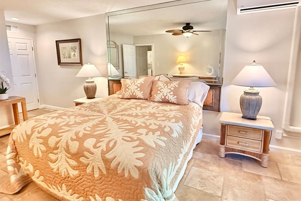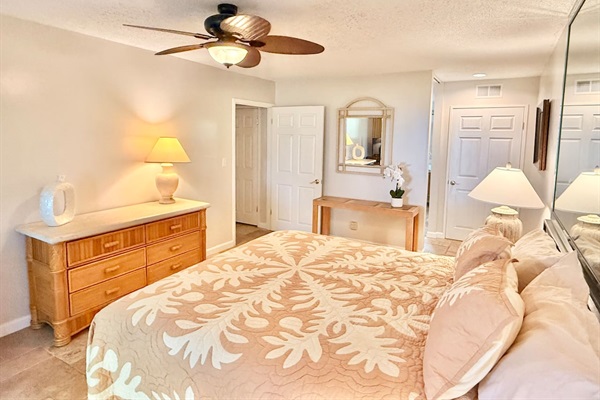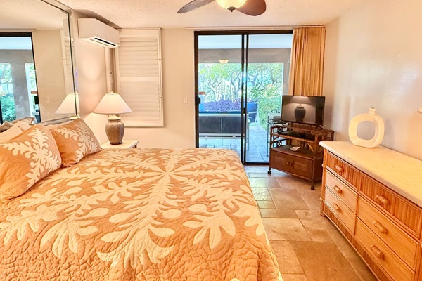 Main Bedroom - King bed, tv, and airy island decor. Wake up to gentle breezes and soft natural light for the perfect start to your day in paradise