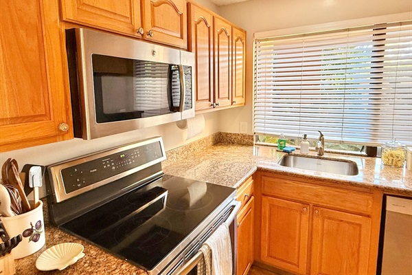 Whip up fresh island flavors in the fully stocked kitchen, complete with modern appliances and all the tools you need.
